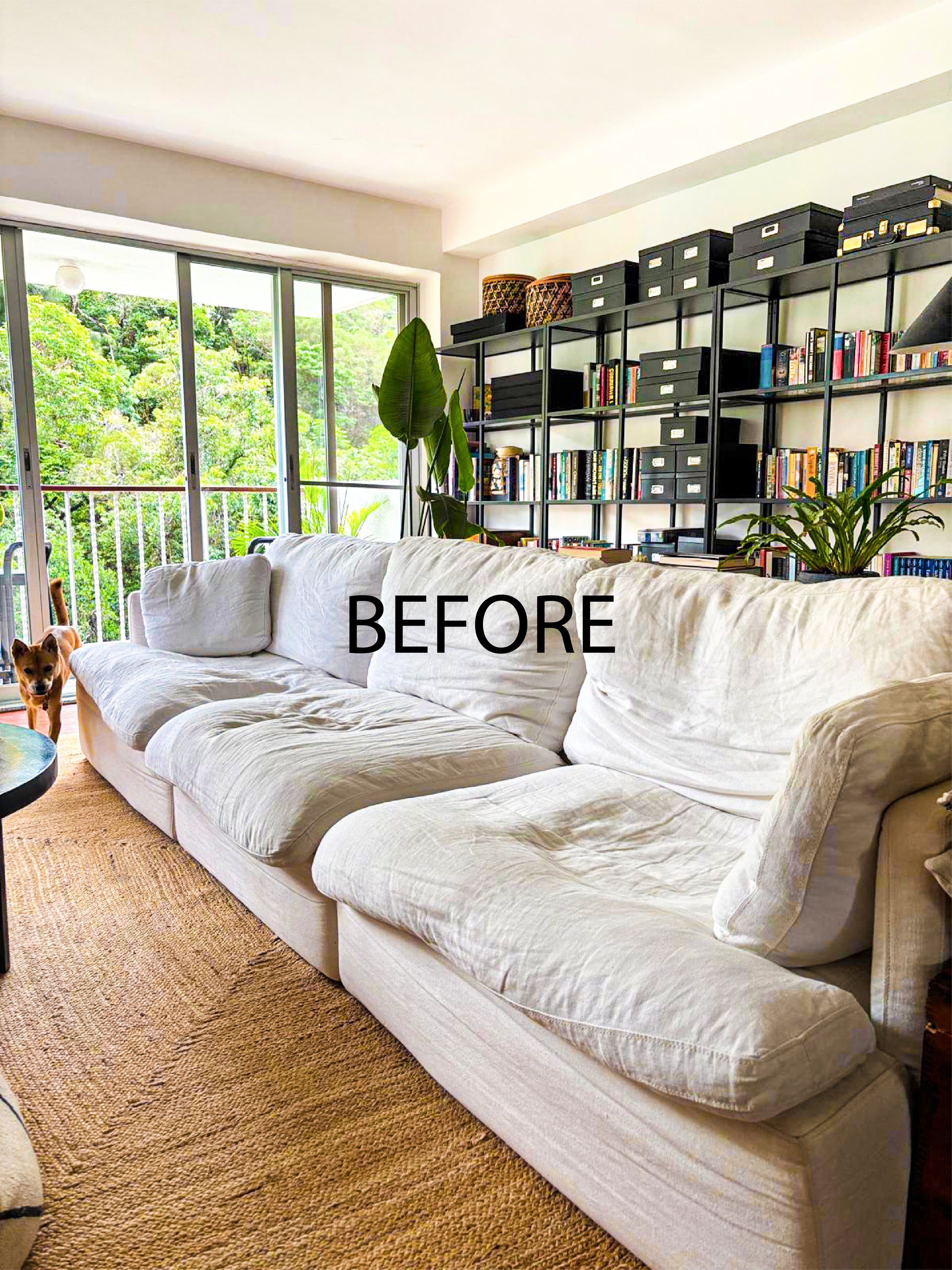 We recently refreshed a NEST Sectional Sofa with a NEW SET of fully removable covers. We minimized disruption by not taking away the sofa frames by measuring the sofa in-house and borrowed sample cushion covers for a better fit. New Set of Covers were ready in about 2 weeks and our team went back to the customers home to make the fitting
